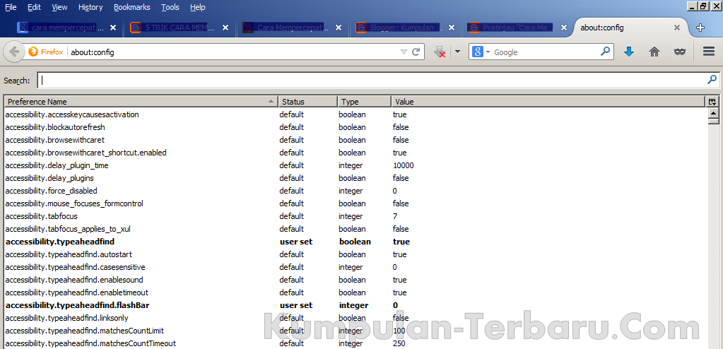 Sampai di sini, Kamu harus melakukan pengaturan seperti berikut agar Mozilla Firefox dapat berjalan optimal. Untuk mengaturnya cukup klik 2x.